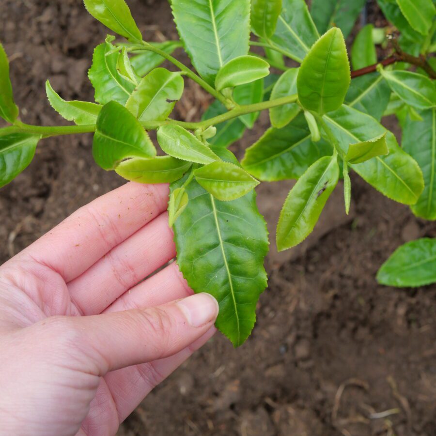 Nos théiers sont essentiellement des Camellia sinensis var. sinensis, la variété la mieux adaptée en climat tempéré. Nous proposons néanmoins quelques Camellia sinensis var. assamica, une variété qui demande plus de chaleur pour se développer.